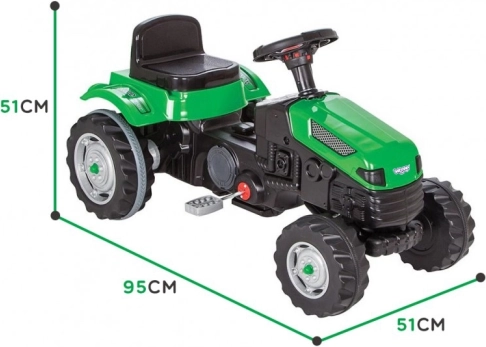 Z 6-stopenjskim pomikom sedeža si lahko traktor udobno prilagodijo otroci različnih višin. Praktičen zadnji kavelj omogoča priklop prikolice ali dodatne opreme ter tako razširi možnosti igre. Kakovostni materiali, prijazni do okolja, so jamstvo za varnost in dolgo življenjsko dobo.