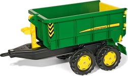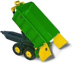 Robusten otroški priklopnik z licenco JOHN DEERE je odličen dodatek k vsem poganjalnim traktorjem Rolly Toys. Ponuja velik nagibni zaboj, odpirajočo se zadnjo stranico in dvonadstavljeno izvedbo za stabilnost. Izdelan je iz vzdržljive plastike za dolgo življenjsko dobo in intenzivno igro. Združljiv z vsemi traktorji Rolly Toys z vlečno napravo.