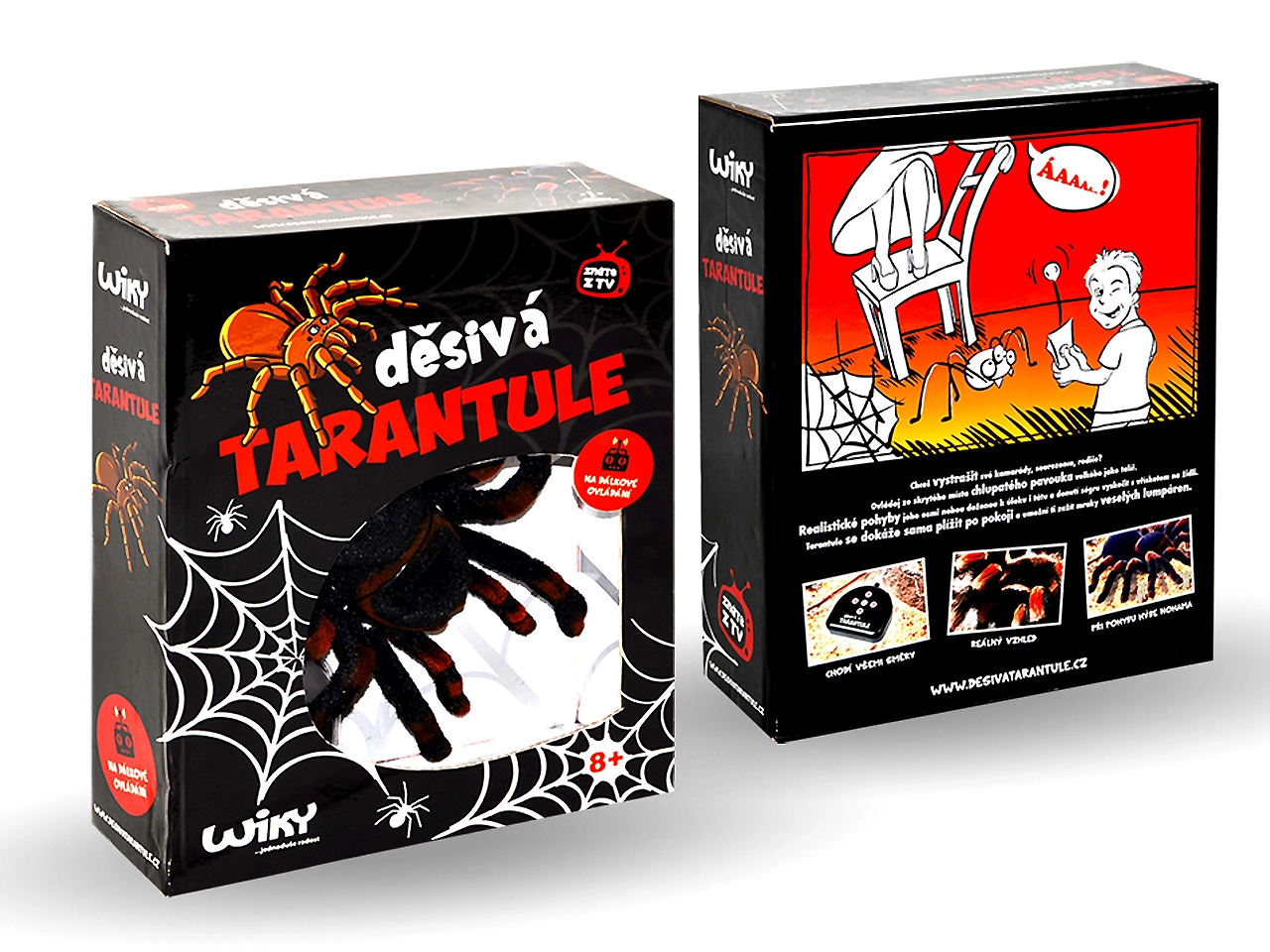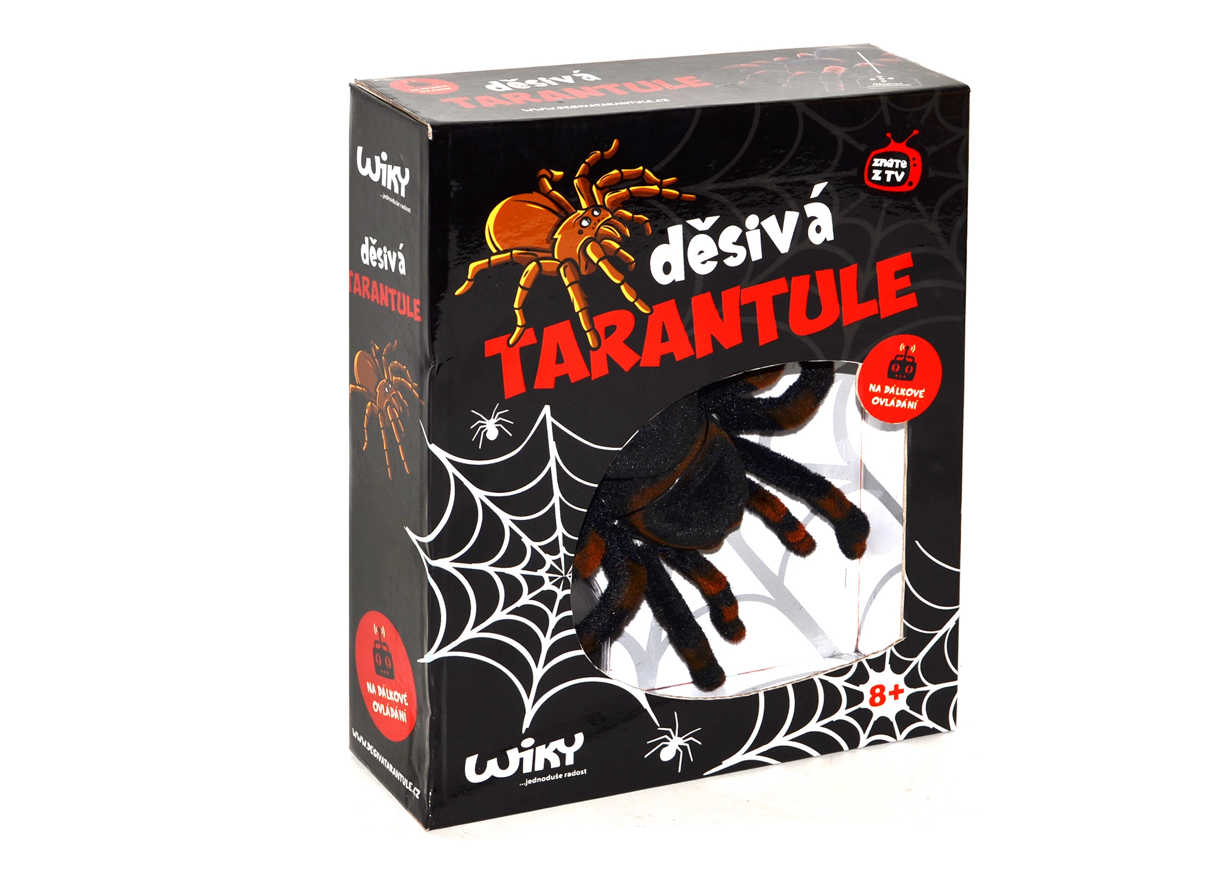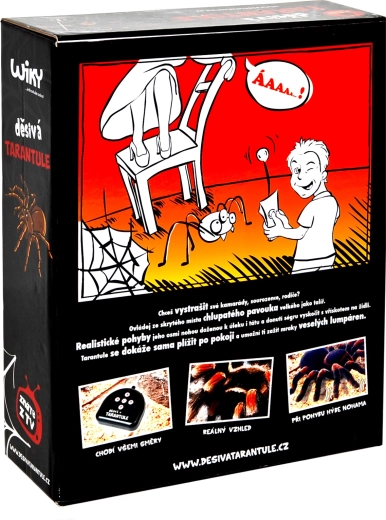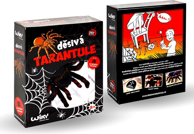 Uživajte v obilici zabave z daljinsko upravljano tarantelo, ki se gladko plazi po tleh in verno posnema gibanje pravega pajka. Realistične podrobnosti in osemnogi premik poskrbijo za nepozabne prestrašitve in smeh v vsej družini.