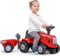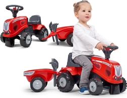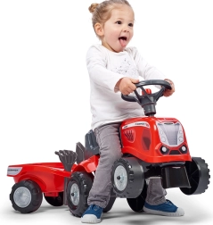 Izjemen otroški traktor McCormick je skrbno zasnovan z poudarkom na vsakem detajlu. Sama konstrukcija je izdelana iz visokokakovostne plastike, kar zagotavlja njeno dolgotrajno vzdržljivost in varnost. Traktor je opremljen z odstranljivo prikolico, ki otrokom omogoča prevoz manjših predmetov, ter z hupo na volanu, kar povečuje interaktivnost.