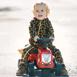 Volan je opremljen s hupo, ki dodaja dodatno raven zabave za male voznike.