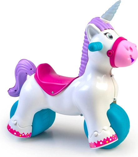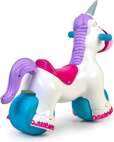 Svetleči rog in veseli zvoki spodbujajo domišljijo, motivirajo k gibanju ter razvijajo vidno in slušno zaznavanje. Idealni spremljevalec za prve korake, vadbo ravnotežja in koordinacije, zasnovan za otroke od 12 mesecev.