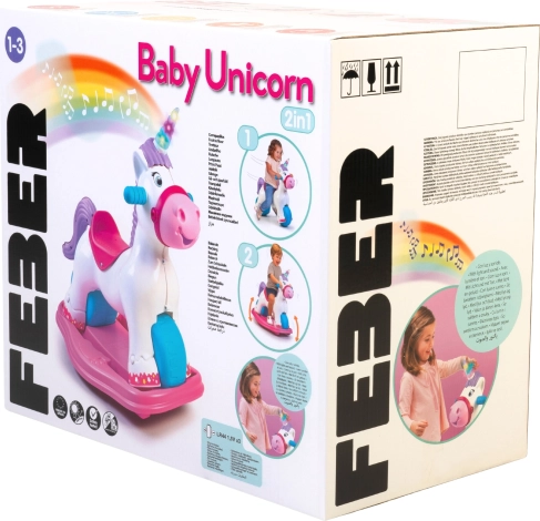 Interaktivni samorog FEBER raste z vašim otrokom: v trenutku ga spremenite iz gugalnika v poganjalček. Široka osnova in velika kolesa zagotavljajo varnost in stabilnost, ergonomski sedež in ročaji so udobni za prijem ter podpirajo naravno držo telesa. Odličen za igro doma in na prostem.