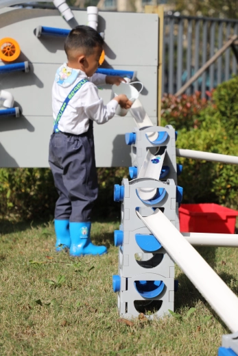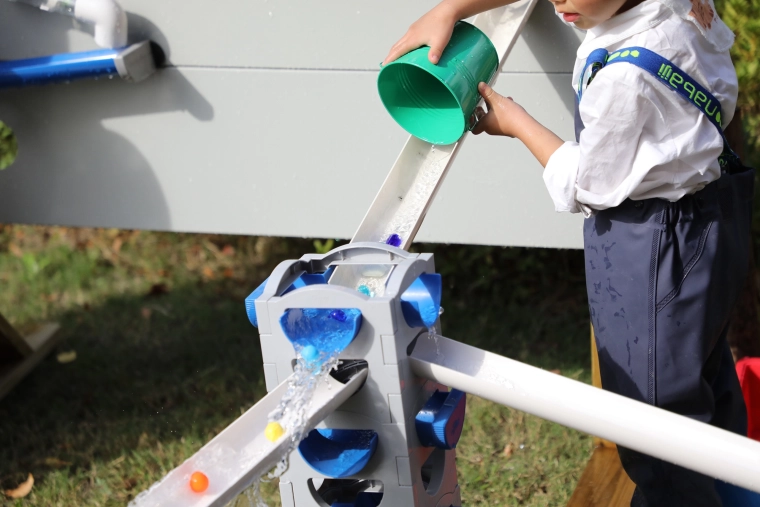 Otroci opazujejo pretok, gravitacijo in hitrost vode, skozi igro urijo logiko in reševanje problemov.