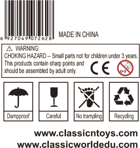 - uporaba pod nadzorom odraslih; majhni deli niso primerni za otroke mlajše od 3 let