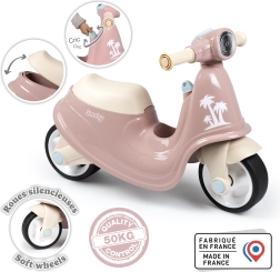Roza skuter od prestižne znamke Smoby je očarljivo retro vozilo na dveh kolesih, idealno za majhne otroke. To je razvojna igrača, ki podpira ravnotežje, moč in kondicijo otroka.