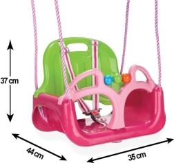 Rožnata gugalnica WOOPIE 3 v 1 je zasnovana za otroke od 12 mesecev in se prilagodi njihovi starosti ter spretnostim. Enostavno odstranljivo naslonjalo in sprednja ograja omogočata hitro spremembo iz varnega sedeža za dojenčke v večji otroški sedež. Trpežne, gladke plastike so prijetne na dotik, enostavne za čiščenje in odporne na uporabo na prostem.