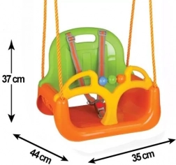 Gugalnica 3v1 je odlična izbira za starše, ki želijo varno in dolgotrajno rešitev za zabavo na vrtu in v notranjih prostorih. Zahvaljujoč modularnemu sistemu lahko enostavno odstranite naslonjalo in sprednjo varovalo za noge, tako da sedež prilagodite starosti in spretnostim otroka. Integrirani pasovi držijo malega potnika varno in udobno, medtem ko čvrsti plastični materiali brez ostrih robov zagotavljajo varnost in enostavno čiščenje.