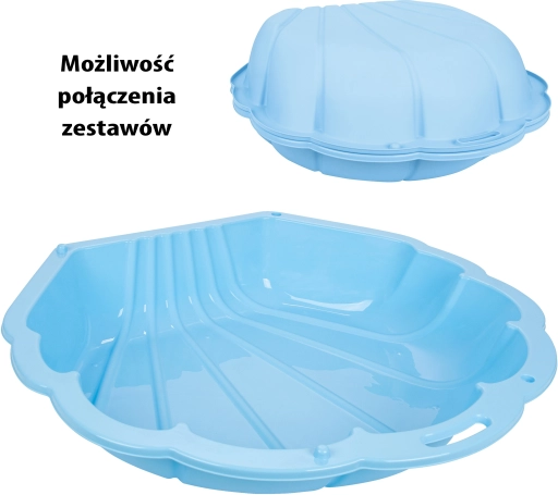 Koncept 3v1 omogoča uporabo po potrebi: eno školjko lahko napolnite s peskom, drugo z vodo, tako da v hipu ustvarite peskovnik in bazen. V hladnejših mesecih je odličen kot suhi bazen za žogice ali kot prostoren zaboj za igrače. Za udobje staršev je izdelek lahek, enostavno prenosljiv in preprosto omiiv.