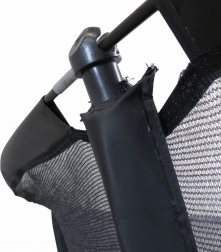 Varnostna mreža objame celotno trampolino in zahvaljujoč zadrgi omogoča lahek vstop in izstop, hkrati pa zanesljivo preprečuje izpad pri igri in pri treningu trikov.