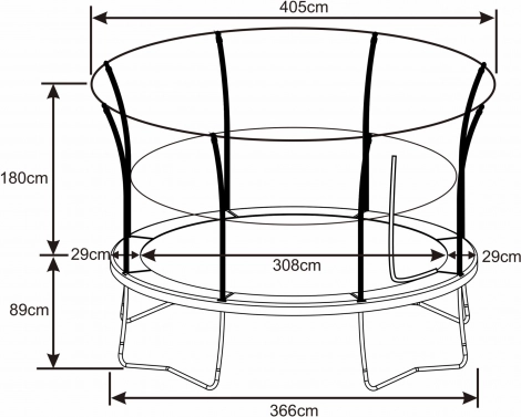 Veliko število 72 stožčastih vzmeti zagotavlja gladke in udobne odboje, medtem ko so trpežni materiali pripravljeni kljubovati spremenljivemu vremenu skozi vse leto. Trampolino lahko postavite na noge ali jo vgradite v teren – prilagodite namestitev svojemu prostoru.
