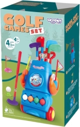 Otroška golf set Woopie predstavlja odličen način preživljanja časa ne le na vrtu, ampak tudi doma. Izdelek je primeren za otroke nad 3 leta in vključuje 4 golf palice, 4 žogice v različnih barvah in dva luknje z zastavicami. Opremljen je s praktičnimi kolesi za enostaven transport.