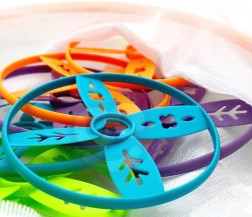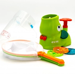 Izstreljevalnik v obliki slončka izstreli disk v zrak – ujemite ga v mrežico, preden pade. Odličen trening zaznavanja in koordinacije.