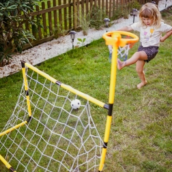 S tem večnamenskim setom si otroci urijo koordinacijo, natančnost in ekipni duh. Celoten paket vključuje košarkarski koš, nogometna vrata, žoge in tlačilko – le odprite in začnite igrati. Zahvaljujoč čvrsti in stabilni konstrukciji je set primeren za notranjo in zunanjo uporabo ter zagotavlja nizko glasnost pri uporabi.