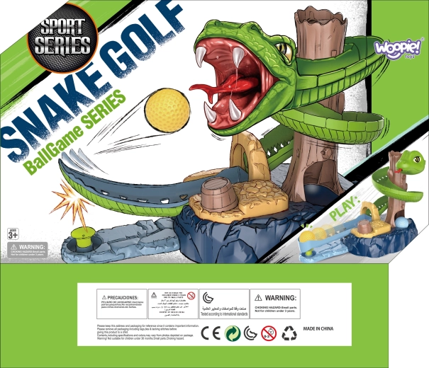 Zabaven set mini golfa WOOPIE SNAKE GOLF prinaša otrokom akcijsko igro z stolpom in progo, preprekami, luknjo z zastavico ter 2 palicama in žogicami. Otroci spustijo žogico s stolpa in jo po premaganih ovirah skušajo spraviti v luknjo. Igra razvija fino motoriko, logično razmišljanje in koncentracijo, je varna za otroke, primerna od 3 let in za 2 igralca.