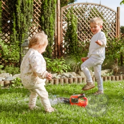 Vrtljiv izhod z LED osvetlitvijo se vrti za 360° in ustvarja tok mehurčkov v različnih smereh. Otroci se tako več gibljejo, urijo koordinacijo in se neskončno zabavajo. Del paketa sta dve steklenički raztopine, zato lahko začnete takoj po vstavitvi baterij.