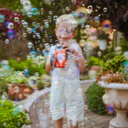 Začnite z mehurčkasto zabavo takoj. Dve nadomestni steklenički podaljšata igro brez pogostega dolivanja.