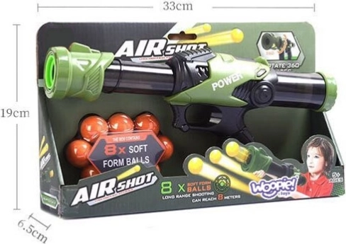 - 1× pištola/izstreljevalnik, 8× penasta žogica