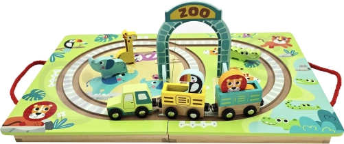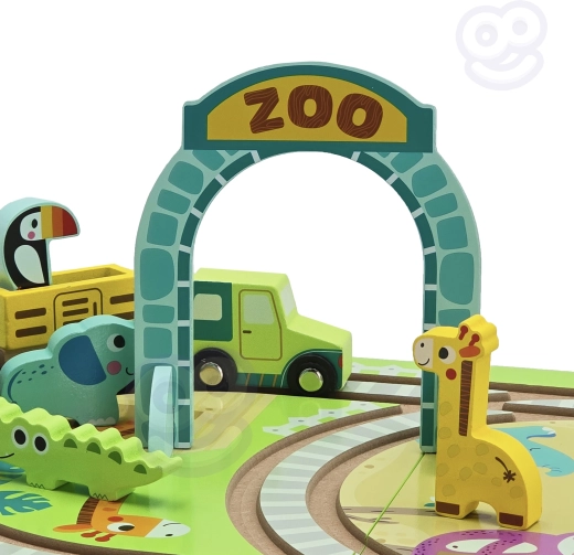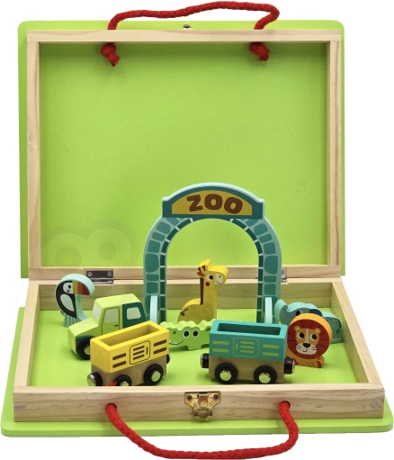 Ta kakovosten leseni set znamke TOOKY TOY otrokom prinaša zabavno vožnjo po ZOO. Lokomotiva z magnetnimi vagončki vozi skozi zložljivi ZOO vhod po trdnih lesenih tirih, medtem ko otroci odkrivajo svet živali in si izmišljujejo lastne zgodbe.