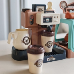 Vlijte vodo v zgornji rezervoar, namestite ročico in opazujte, kako »kava« teče v lonček. Spremljevalni zvoki in kontrolne lučke spremenijo igro v nepozaben ritual.