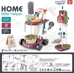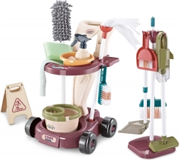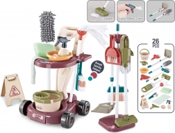 Set posnema pravi voziček za čiščenje in tako spodbuja otroke v raziskovanju odgovornosti in skrbi za čistočo.