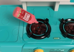 S pomočjo dveh kontrolnih gumbov lahko otroci preizkusijo svetlobne in zvočne učinke. Prvi gumb vklopi prvo gorilnico, ki se osvetli, medtem ko drugi gumb zažene drugo gorilnico s spremljajočimi utripajočimi lučmi in zvoki cvrtja. Poleg tega iz pokrovke lonca uhaja vodna para, kar posnema pravo kuhanje!