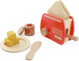 - Vsebina kompleta: toaster s premično ročico in gumbom, dva lesena kosa »kruha«.