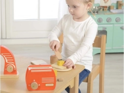 Lesen toaster Masterkidz je lepa in trpežna izobraževalna igrača, ki spodbuja otroke h kreativni igri ter razvija njihove ročne in socialne veščine. Zahvaljujoč trdni izdelavi iz naravnega lesa je varen in prijeten za uporabo.