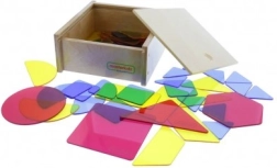 Set prosojnih barvnih ploščic različnih oblik omogoča, da je učenje sestavljanja geometrijskih likov preprosto in enostavno. Deli so izdelani iz trpežnega akrila v natančnih barvah, kar otrokom omogoča, da pridobijo tudi znanje o mešanju barv, npr. rdeča + rumena = oranžna. Idealna kombinacija s svetlobno LED ploščo Masterkidz Education. Set je dobavljen v čvrstem lesenem ohišju, kar olajša shranjevanje.