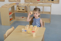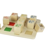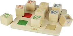 Dodatna funkcija igrače je možnost polnjenja prazne kocke s poljubnim materialom, na primer s peskom ali kamenčki, in odkrivanje, kakšen zvok bo oddajala ob stresanju. Igrača je idealna za Montessori pristop.