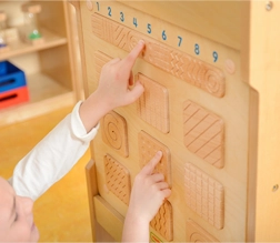 Tabla vsebuje 9 parov tekstur z jasno razločnimi vzorci, ki podpirajo učenje skozi igro. Zahvaljujoč robustni leseni izvedbi je odporna in idealna za domove, vrtce, otroške kotičke in terapevtske centre. Namestitev je fleksibilna – na steno, v sistem Masterkidz Flex ali na samostoječe stojalo.
