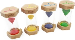 Odkrijte, kako je učenje o času zabavno in razumljivo! Ta komplet vsebuje 4 peščene ure z različnimi barvami peska in različnimi merilnimi intervali. Otrokom nazorno pomaga razumeti, kako čas teče, katere so časovne enote in kako jih uporabljati v praksi. Igrivo učenje, vizualna preglednost in motivacijska barvna izvedba spodbujajo zbranost in veselje do spoznavanja.
