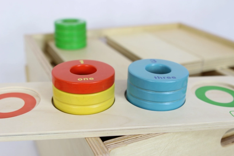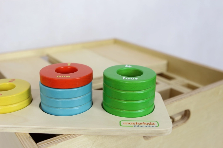 Odkrijte pametno igračo za male raziskovalce: lesen sortirnik znamke MASTERKIDZ otroke uči štetja, prepoznavanja barv in logičnega razvrščanja. Kakovostna lesena izdelava, štiri izrazite barve ter obročki s številkami in angleškimi besednimi opisi spodbujajo fino motoriko in koordinacijo oko–roka pri igri doma in v vrtcu.