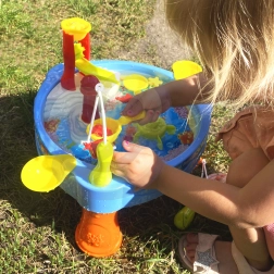 Vodni mlin in slap omogočata tekoče kroženje vode, kar otrokom daje občutek prave vodne pustolovščine doma.