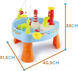 Vodna mizica Woopie je idealna izbira za otroke od 3 let dalje. Zahvaljujoč njenim večfunkcijskim elementom, kot so vodni mlin, slap in svetlobni svetilnik, nudi ure zabave in razvoj finomotoričnih spretnosti. Ta igralni set otrokom omogoča, da doživijo vznemirjenje ribolova kar doma.