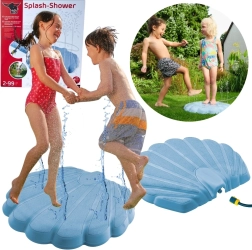 Vodni podstavek BIG v obliki školjke spremeni vrt v osvežujoče igrišče. Otroci uživajo v nežnih pršilih in fontanah, ki se aktivirajo šele ob stopu – zabava in prihranek vode v enem. Stabilen proti-zdrsni tekač zagotavlja varen korak, manjši otroci pa lahko z lahkim izdelkom enostavno rokujejo.