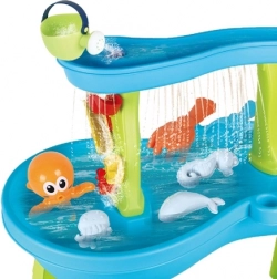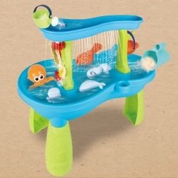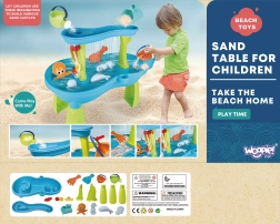 Vodna miza Hobotnica znamke WOOPIE prinaša edinstveno izkušnjo z vodo in peskom za otroke. Zahvaljujoč 18 dodatkom kot so 3 modelčki, hobotnica, zalivalka, košarica, nabiralec peska in 2 lopatki, si otroci lahko uživajo v neskončnih možnostih igre. Voda, nalita v zgornji del mize, lahko odteka skozi odprtine na dno ali poganja vodne mlinske kolesa. Odlično za igro doma in na prostem!