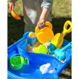 Vključuje kannice, lopatke, grabljice, vedra, modelček in »oblaček« za iztiskanje vode – vse za neskončne igralne scenarije.