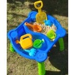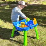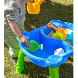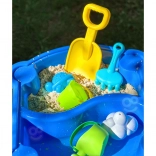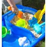 Praktični dvojni kadi omogočata čisto igro brez mešanja vode in peska. Otroci lahko hkrati zajemajo, prelivajo in oblikujejo.