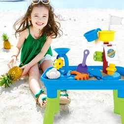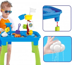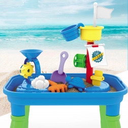 Kombinira igralno mizo z vodo in peskom v en izdelek, kar omogoča raznolike možnosti igre.