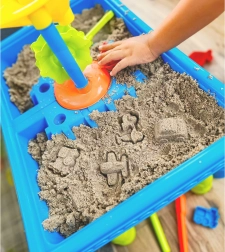 V paketu najdete: mizo za vodo, kanjo, 3 vodne mline, 2 lopatki, sito in 12 modelčkov.