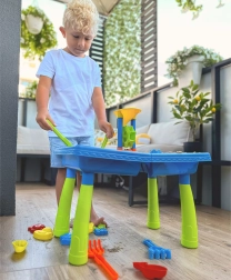 Miza za vodo in pesek WOOPIE je odlična tako za igre na vrtu kot tudi doma. Ponuja odlično kombinacijo iger z peskom in vodo, z interaktivnimi elementi, kot so vodni mlini, pa je igra še bolj zabavna.