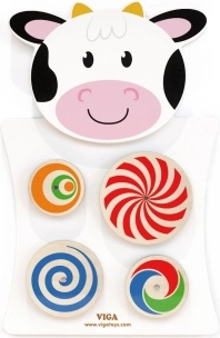 Ta barvita kravica je idealen pripomoček za montessori dejavnosti doma in v vrtcu. Otroci skozi igro urijo koordinacijo oko–roka, odkrivajo vzorce in odnose ter razvijajo potrpežljivost in zbranost. Kakovosten lakiran les in varne barve zagotavljajo dolgo življenjsko dobo in brezskrbno uporabo.