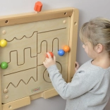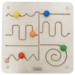 Lesena izobraževalna tabla Masterkidz z različnimi ukrivljenimi potmi in barvnimi gumbi pomaga otrokom razvijati fino motoriko in prostorsko orientacijo.