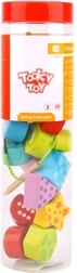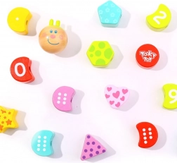 Oštevilčeni in oblikovani delčki se natikajo na vrvico in otroci si naravno urijo štetje, razvrščanje in zaporedje. Idealno za prve matematične korake.