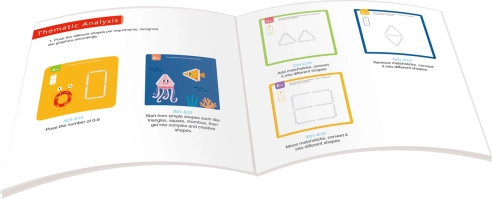 Kartice z barvno označeno težavnostjo in 50 različnimi vzorci ohranjajo otrokovo pozornost ter spodbujajo osredotočenost in sistematično reševanje nalog.
