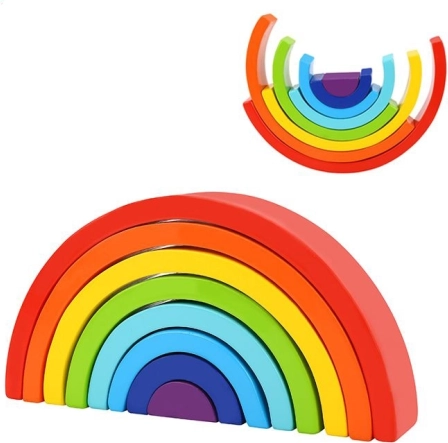 Odkrijte čar odprte igre z leseno mavrico TOOKY TOY – kompletom 8 barvnih lokov za otroke od 18 mesecev. Iz lokov zlahka ustvarite mavrico, tunele in stolpe, ki razvijajo fino motoriko, logično razmišljanje in koncentracijo. Kakovostna lesena izdelava z netoksičnimi barvami ter certifikatom FSC zagotavlja varno in trajnostno zabavo.