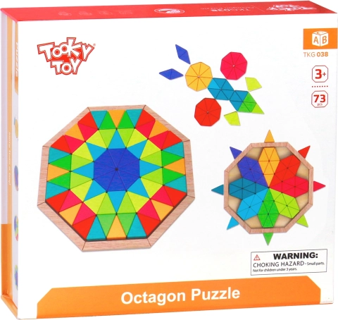 Odkrijte ustvarjalni svet z leseno mozaiko TOOKY TOY s 73 kosi. Barviti trikotniki v osmerokotnem okviru razvijajo ustvarjalnost, domišljijo in fino motoriko. Igrača je izdelana iz kakovostnega lesa in prebarvana z netoksičnimi barvami, zato je varna in okolju prijazna.