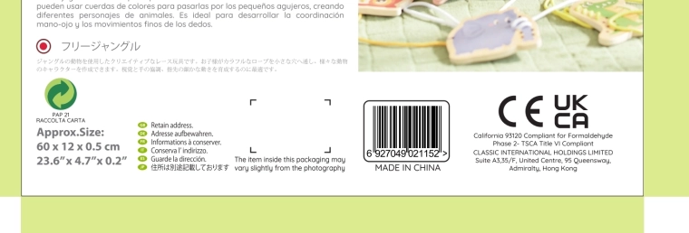 Komponente so izdelane iz lakiranega lesa in obdelane z netoksičnimi barvami, zato so varne in prijetne na dotik. Igra spodbuja koncentracijo, ustvarjalnost ter naravno učenje skozi gibanje in rokovanje.