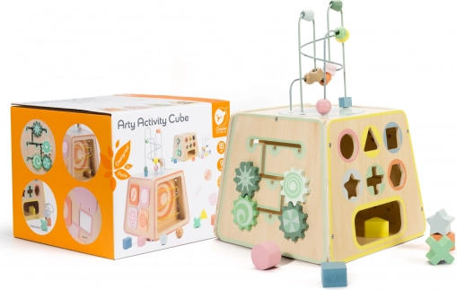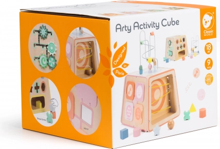 Lesena aktivnostna kocka 6v1 CLASSIC WORLD otrokom od 18 mesecev ponuja številne priložnosti za razvoj veščin skozi igro. Kakovostna lesena izdelava, netoksične barve in premišljeni detajli jo naredijo za varno in vzdržljivo igračo za vsakodnevno raziskovanje.